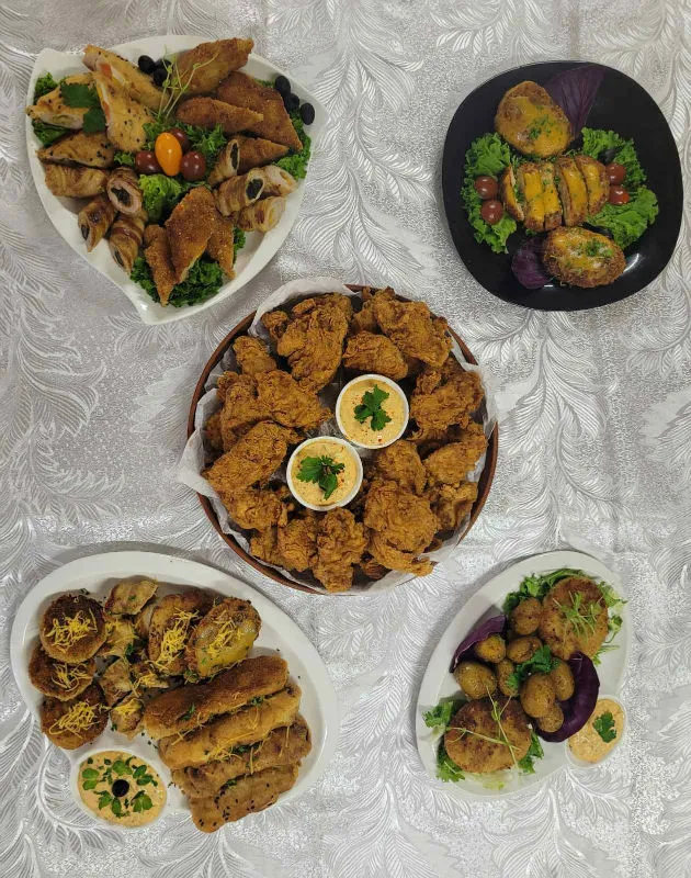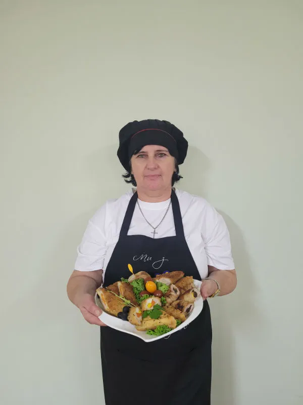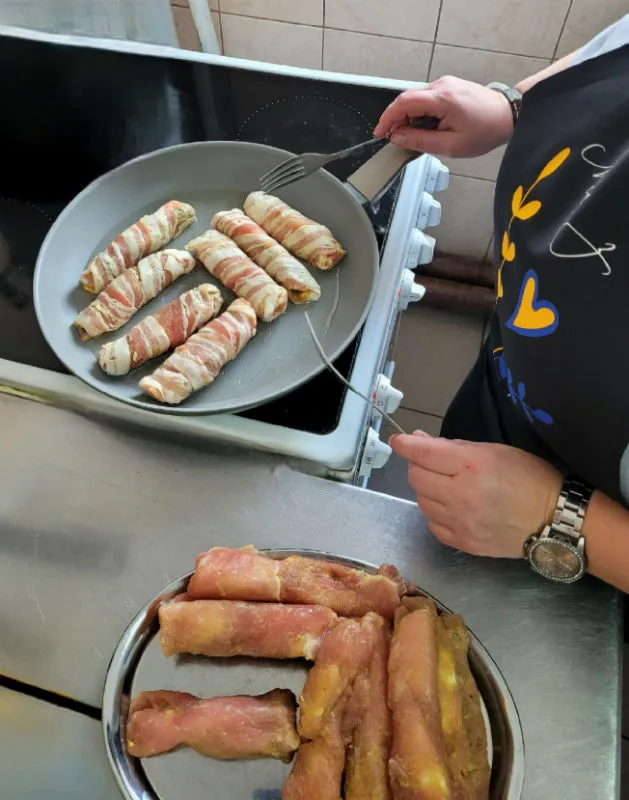 • Крученики з різними начинками: з чорносливом, із сиром, крученики в беконі, а також з яблуком, тушкованим на вершковому маслі (подача з морквою та відвареними яйцями);