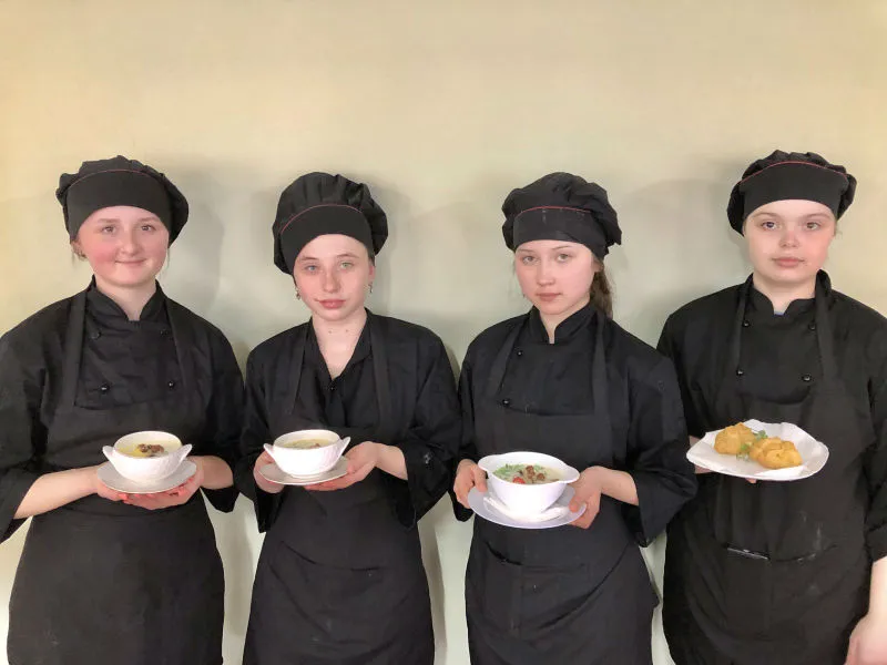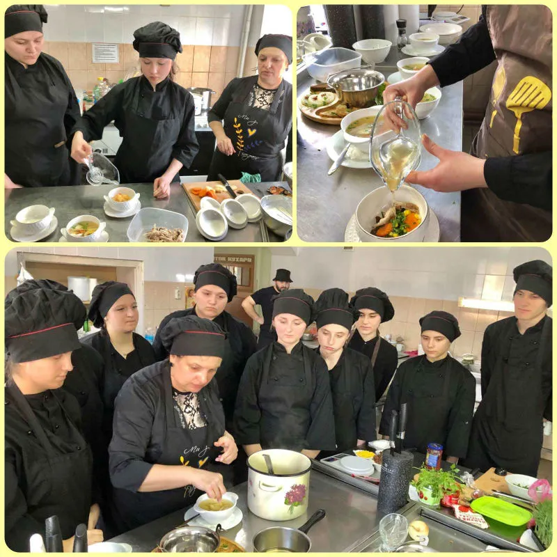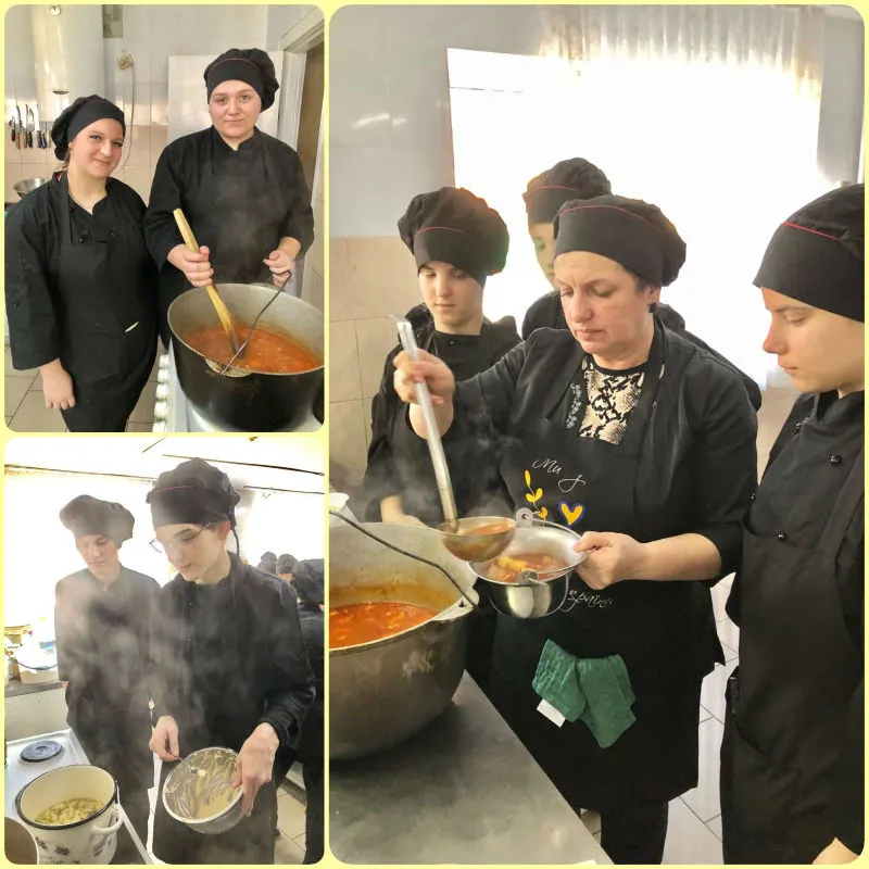 05.03.2026Вас вітає навчальна група №1 КЗ «Тячівський професійний ліцей» ЗОР (професія кухар, офіціант) і запрошує скуштувати перші страви – супи. Сьогодні на уроці виробничого навчання здобувачі освіти під керівництвом майстра виробничого навчання Олександри Погоріляк опанували прийоми і набули навичок з приготування таких супів: бульйон консоме з різними гарнірами (яйце пашот, закусочні профітролі з солоною начинкою, грінками, відварним м’ясом та овочами), суп з сирними кульками та закарпатський бограч.