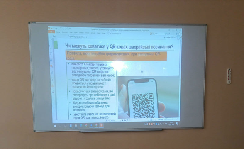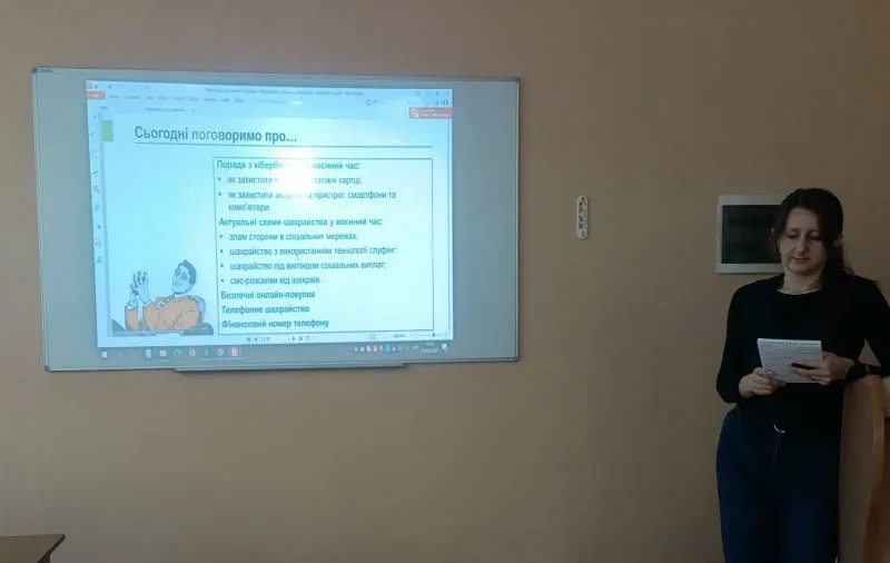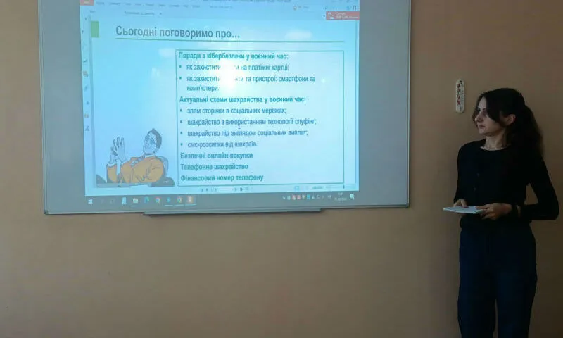 Під час заняття учасники ознайомилися з найпоширенішими схемами шахрайства: фішинговими повідомленнями, підробленими сайтами банків і благодійних фондів, шахрайськими дзвінками та фейковими оголошеннями про грошову допомогу. Особливу увагу приділено правилам безпечного користування банківськими картками, захисту персональних даних, створенню надійних паролів та перевірці інформації з офіційних джерел.