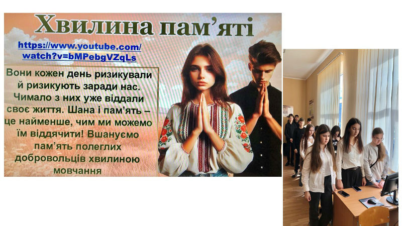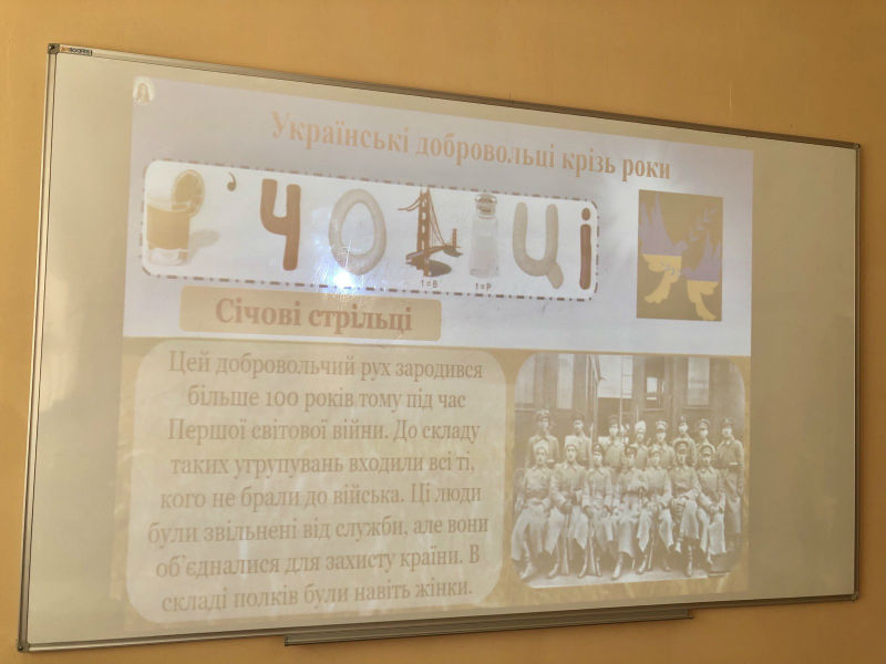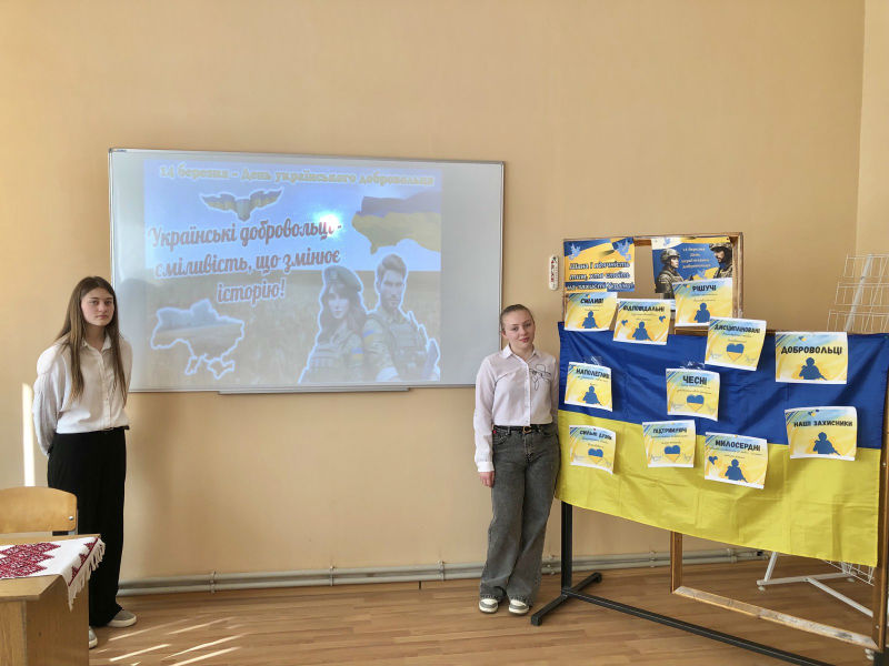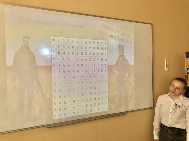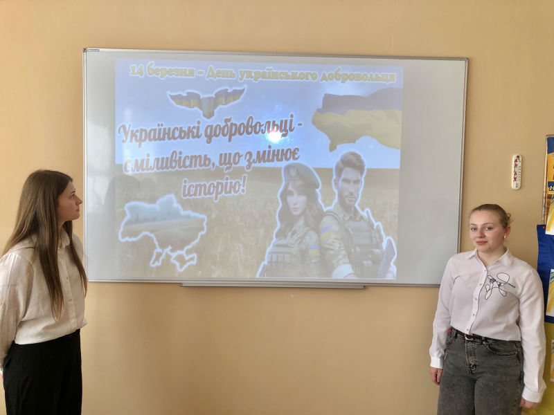 З метою вшанування мужності та героїзму захисників незалежності класні керівники Наталія Косов, Марта Копчалюк та учасники гуртка «Я – патріот, я – українець» провели інформаційно-пізнавальний захід «Українські добровольці – сміливість, що змінює історію!».