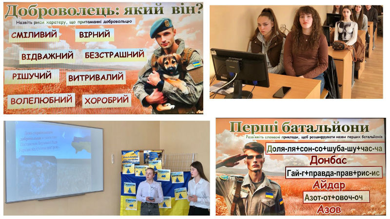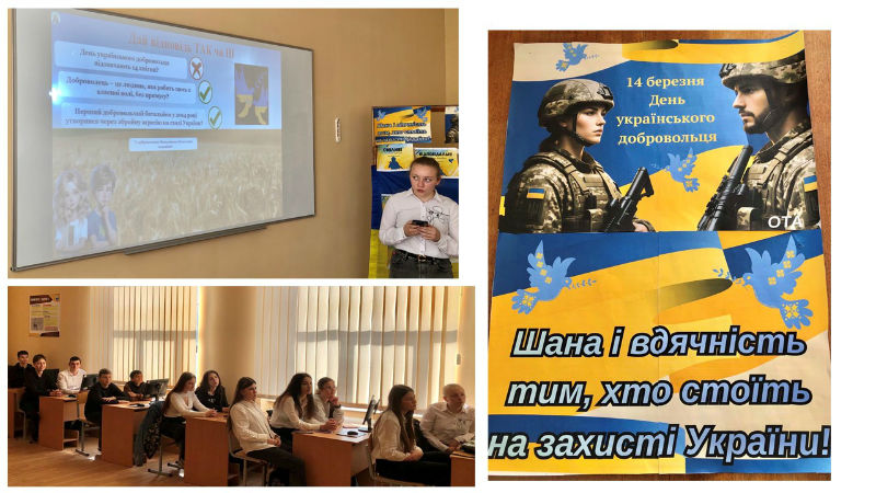 Вихованці КЗ «Тячівський професійний ліцей» ЗОР дізналися про історію добровольчого руху в Україні, переглянули документальні відеоматеріали, що розповідають про подвиги українських добровольців та взяли участь у патріотичній вікторині.