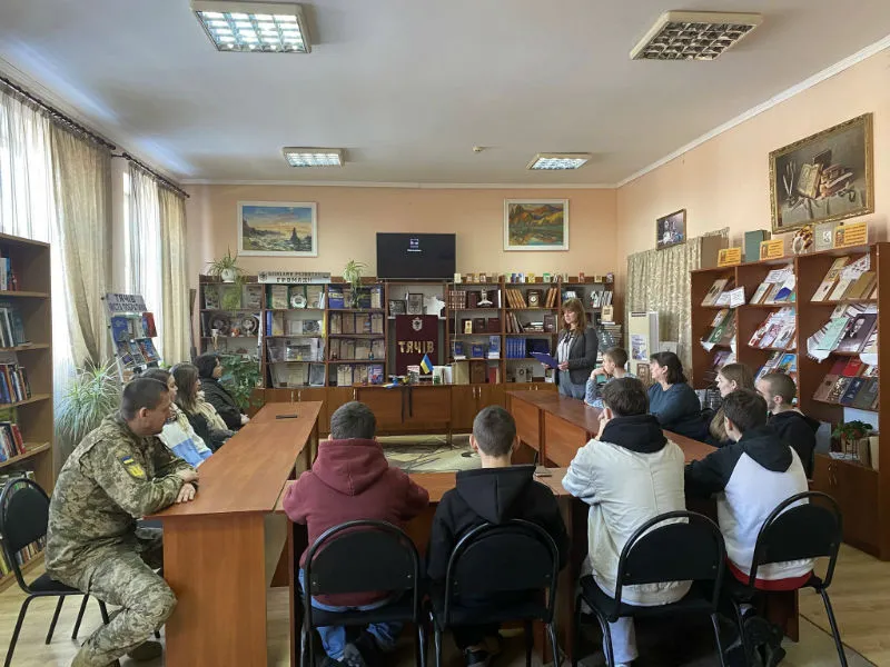 21.01.2026Сьогодні, в Тячівська публічна бібліотека пройшов захід до Дня вшанування захисників Донецького аеропорту «У нашій памʼяті назавжди». Гостями були офіцер відділення цивільно-військового співробітництва Тячівського РТЦК та СП Микола Запальський, здобувачі освіти КЗ «Тячівський ПЛ» ЗОР з викладачами. Їм було зачитано коротку довідку про «кіборгів» та переглянули відеопрезентацію «Кіборги-герої, яких не можна забути», вшанували памʼять захисників хвилиною мовчання. На згадку зробили памʼятне фото.