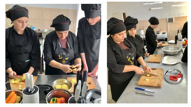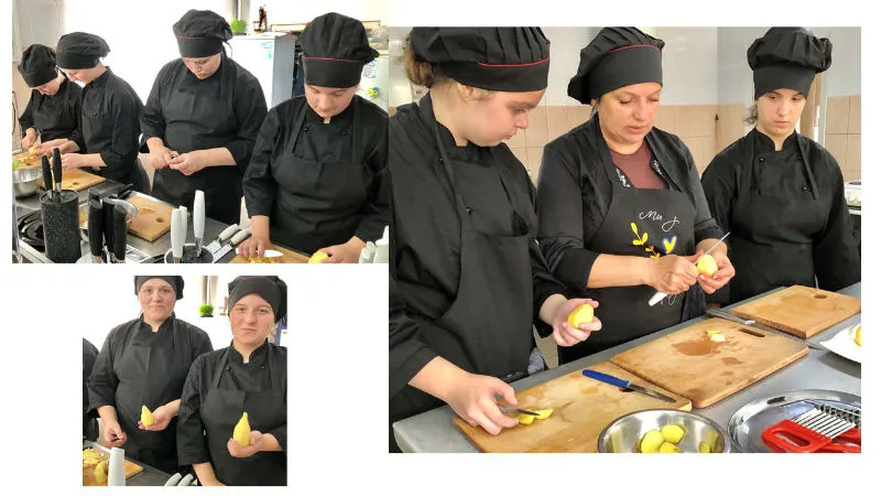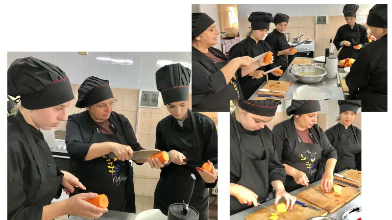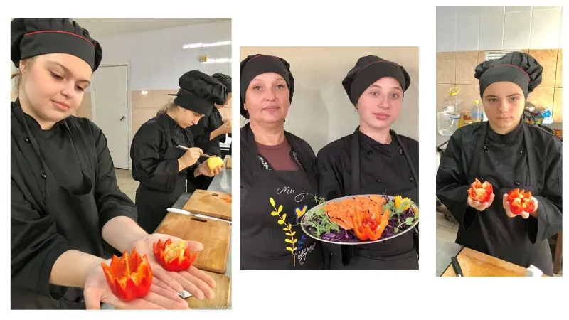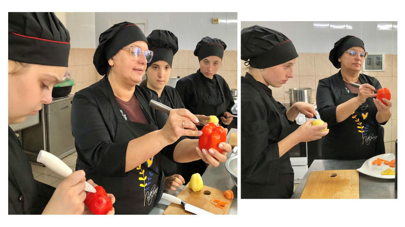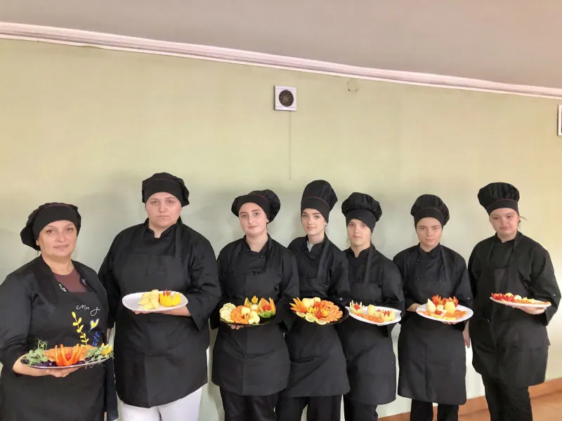 У здобувачів освіти першого курсу КЗ «Тячівський професійний ліцей» ЗОР з професії «Кухар, офіціант» проведено  урок виробничого навчання на тему складних форм нарізки овочів, які включають карбування, обточування та вирізання для створення різних форм.  Учні ознайомилися та практично відпрацьовували такі види нарізок як бочечки, часнички, грушки, кульки, зірочки, шестерні, грибочки, гребінці.