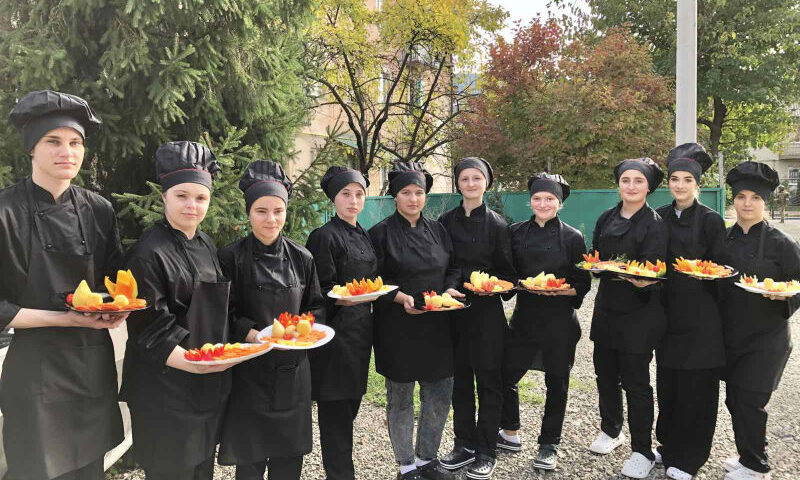 У здобувачів освіти першого курсу КЗ «Тячівський професійний ліцей» ЗОР з професії «Кухар, офіціант» проведено  урок виробничого навчання на тему складних форм нарізки овочів, які включають карбування, обточування та вирізання для створення різних форм.  Учні ознайомилися та практично відпрацьовували такі види нарізок як бочечки, часнички, грушки, кульки, зірочки, шестерні, грибочки, гребінці.