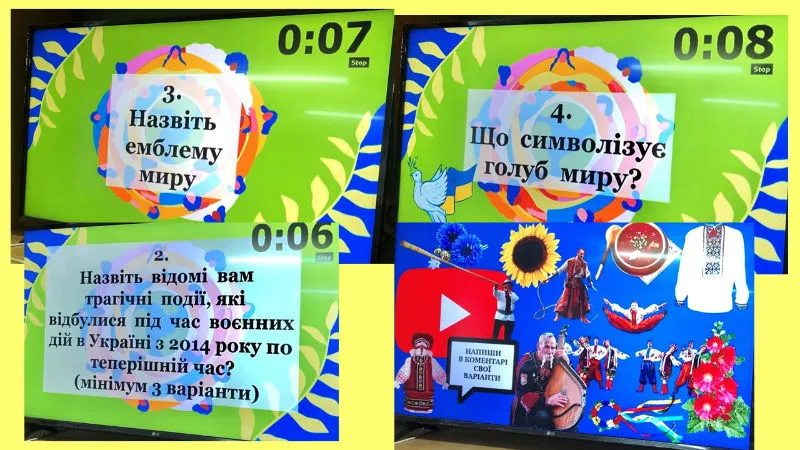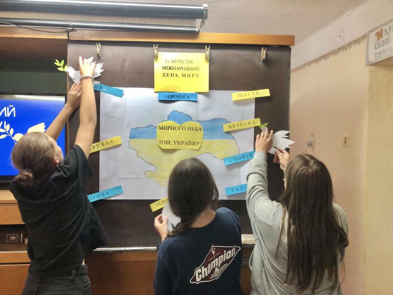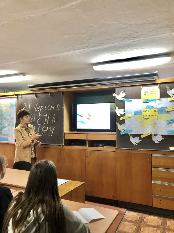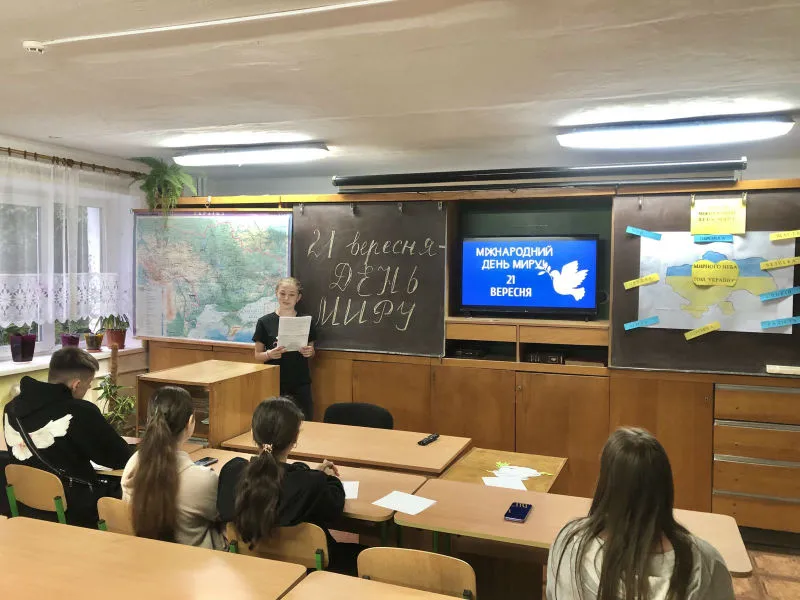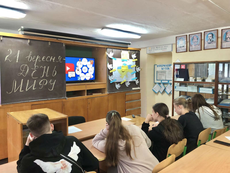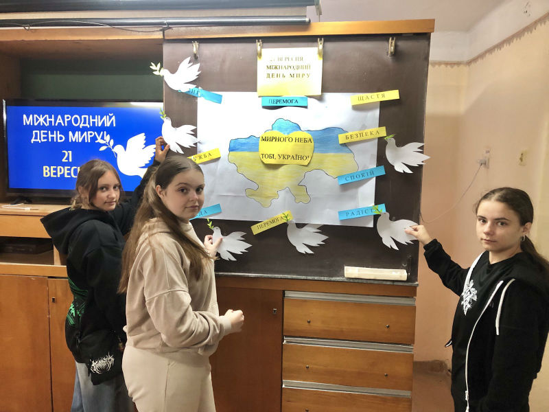 Розповідалося про історію виникнення свята, символи миру, місця їх установлення, митців, які причетні до цих символів, уособлення миру для кожного жителя України і звісно ж для учнів ліцею особисто! Для закріплення та поглиблення знань здобувачі освіти взяли участь у вікторині: виконували різноманітні тематичні завдання: розгадували ребуси та кросворди, пригадували та поєднували різні частини прислів’їв про мир та спокій, розшифровували криптограми, шифрограми тощо.