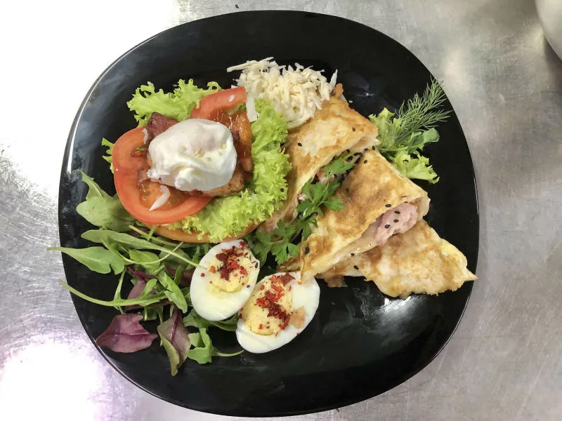 - італійська фрітата (запечений омлет із різноманітними добавками: овочами, сиром, м’ясом, ковбасою);