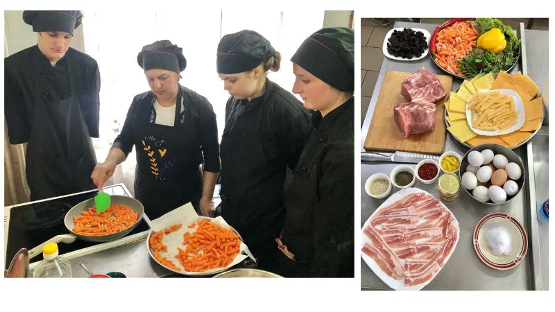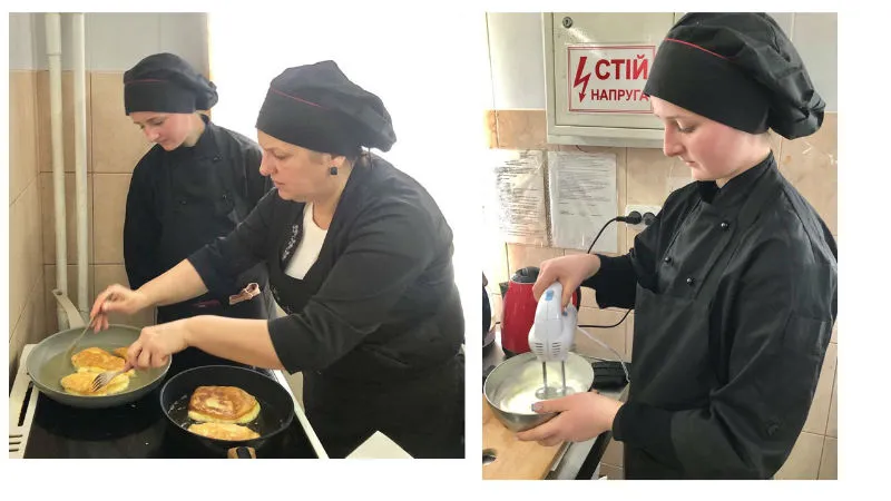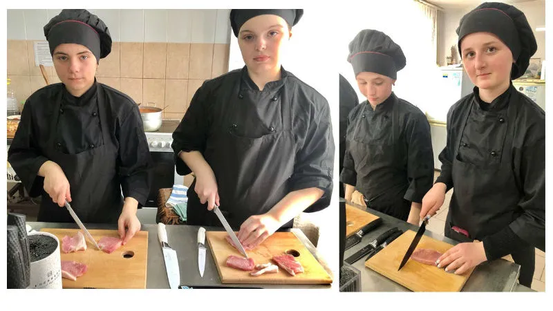 Під час уроку виробничого навчання здобувачі освіти КЗ «Тячівський професійний ліцей» ЗОР відпрацьовували тему «Приготування  напівфабрикатів з м’яса: свинини, яловичини».  Під керівництвом майстра виробничого навчання Олександри Погоріляк майбутні кухарі вчилися обробляти м’ясо, готувати такі соковиті м’ясні страви як: ромштекс, відбивна в клярі, завиванці із чорносливом та сиром.