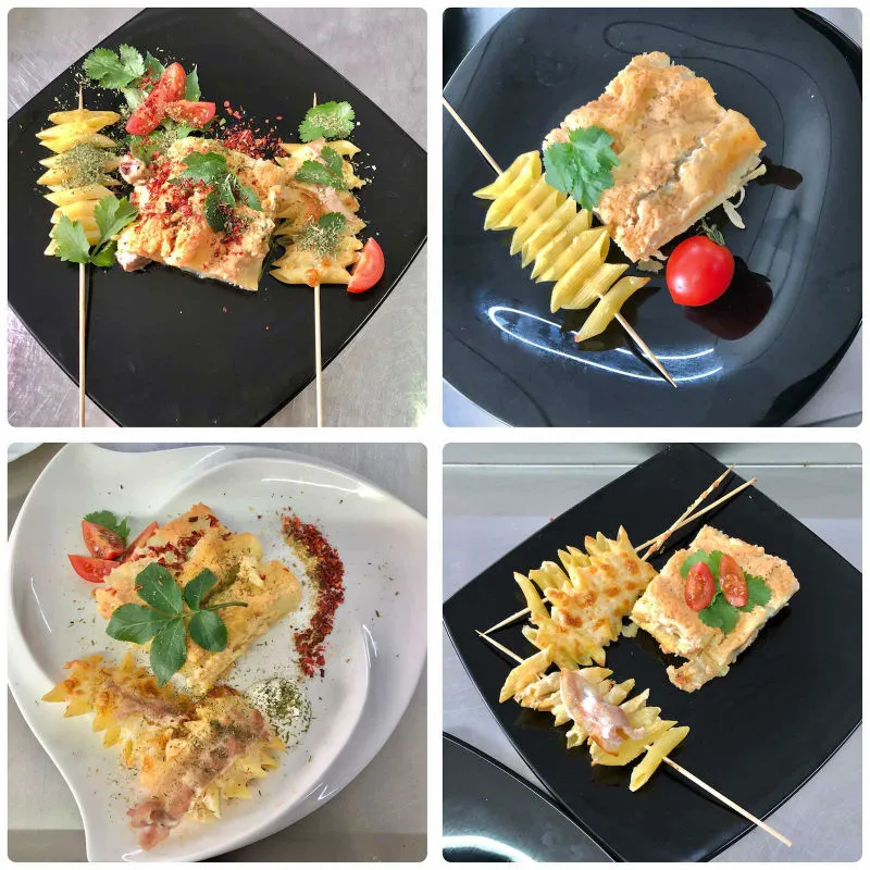 -запечені канелоні з м’ясним фаршем, сиром та пікантною заливкою;