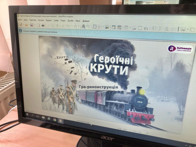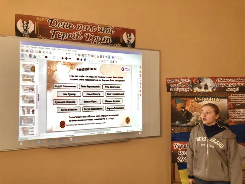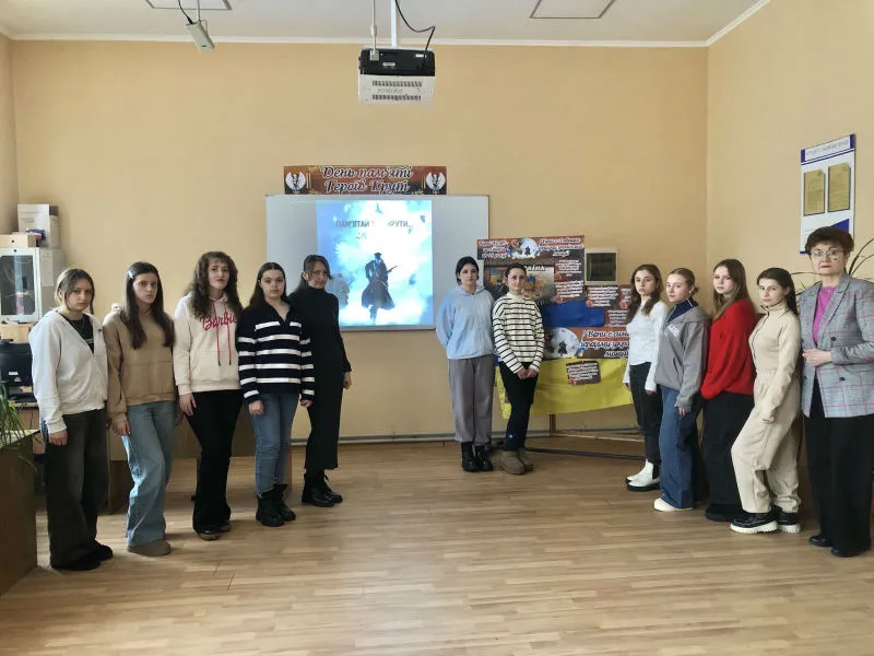 Учасники гуртка «Я – патріот, я – українець» (керівник Марта Копчалюк) провели виховний захід у формі гри-реконструкції, під час якої здобувачі освіти разом з класними керівниками Наталією Косов, Ольгою Геревич сіли на потяг історії, щоб зробити власну спробу реконструювати бій під Крутами. Присутні на заході стали дослідниками  героїчної битви, знаходили відповіді на логічні запитання, розвіювали міфи, обдумували стратегію бою, оцінювали рівність сил, проводили паралелі із сучасним героїзмом захисників. Це був не просто виховний захід. Це жива подорож крізь пам’ять, гідність і силу України.