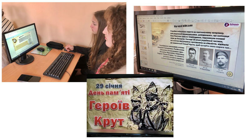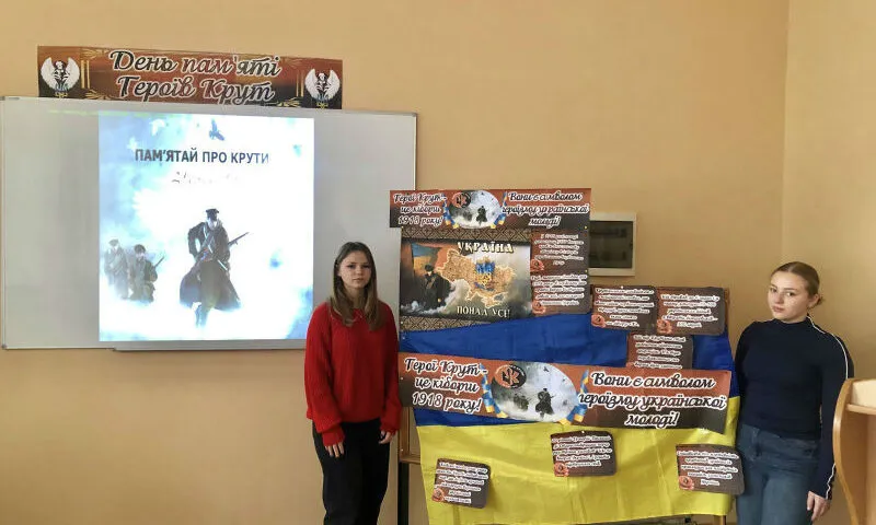 Щороку 29 січня потяг історії повертає нас, сучасних українців, до маленької залізничної Крути, де героїчні захисники «гідно склали іспит на мужність, хоча у кожного з них було велике бажання жити у новій державі» – ці слова письменниці Ольги Пилипчук із книги «Нескорена Україна» спонукають вірити, що сучасна молодь буде гідним послідовником тих світлих ідеалів, за які молоді юнаки віддали своє життя.